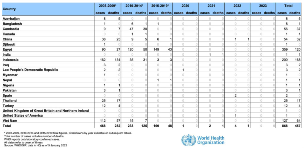 Gần đây, ngày 8/02/2023, Tổng Giám đốc của WHO đã có nhận định về tình hình dịch bệnh cúm H5N1 trên thế giới, tuy đánh giá mức độ rủi ro của dịch bệnh này đối với con người là thấp nhưng WHO khuyến cáo không chủ quan và cần chuẩn bị các tình huống xấu có thể xảy ra.