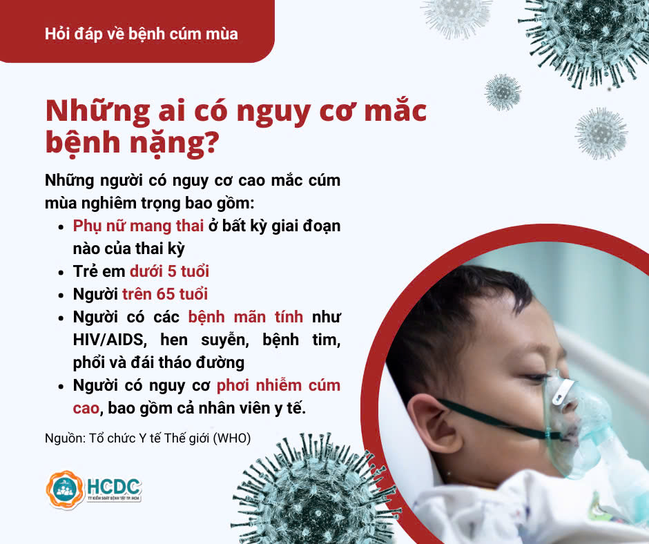 Cúm mùa có thể gây biến chứng nguy hiểm, đặc biệt với những nhóm người có nguy cơ cao như: