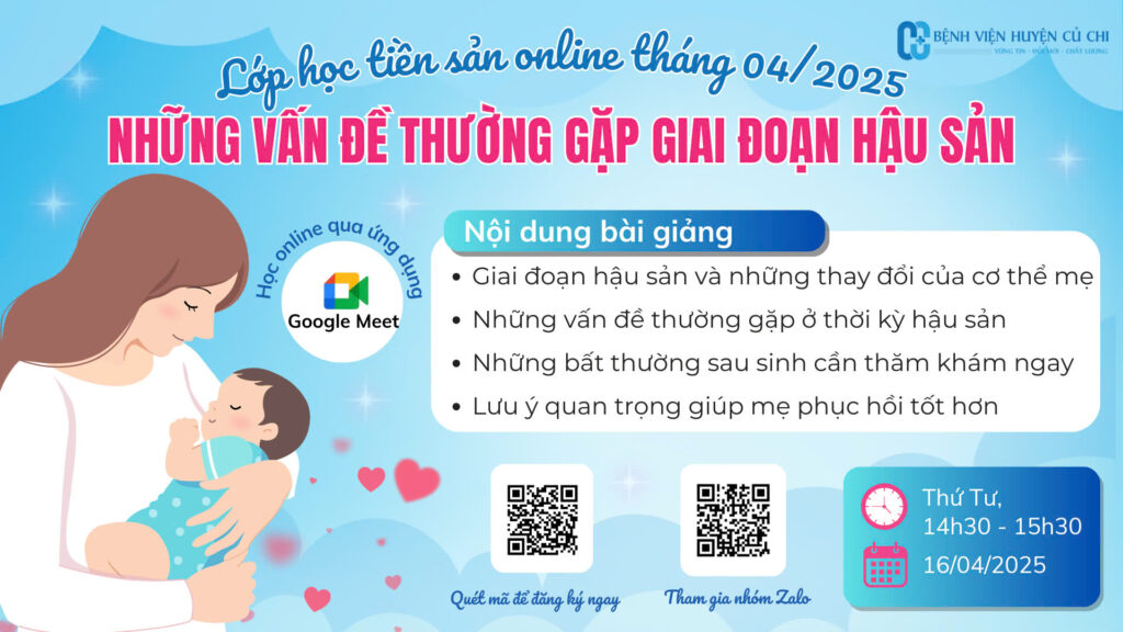 ➡️ Tham gia ngay lớp học tiền sản online do Bệnh viện huyện Củ Chi tổ chức để trang bị đầy đủ kiến thức giúp mẹ vượt qua giai đoạn hậu sản an toàn!